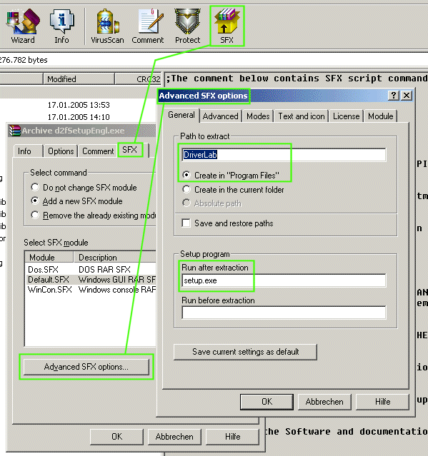 context menu option “Open with WinRAR”. Within WinRAR please click “SFX”, then