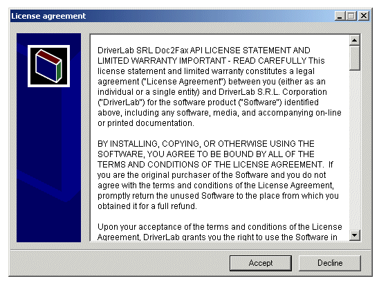 License agreement text and corresponding window caption.
