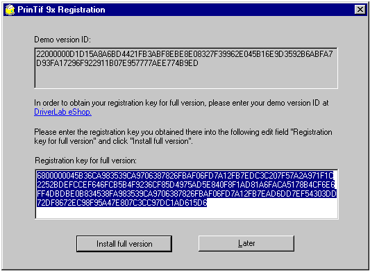 full hexadecimal Demo Version ID (please make sure you don’t omit any