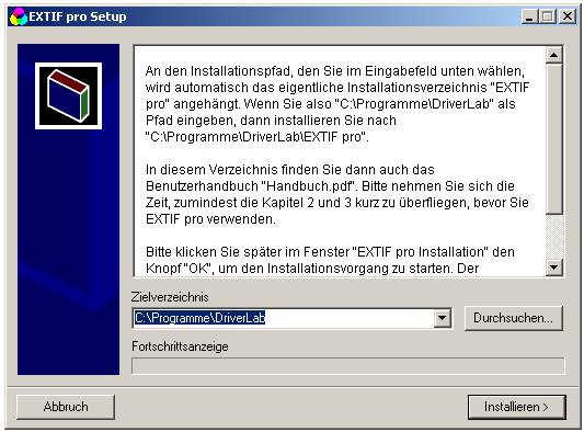 4. Klicken Sie im Fenster „EXTIF pro Installation“ den