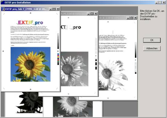 bestätigt das Fenster „EXTIF pro Installation“ mit der Meldung „Erfolgreich