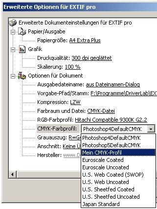 *.icc-Dateien in das Unterverzeichnis „User CMYK Profiles“ des Installationsverzeichnisses „EXTIF pro“ und öffnen dann die Eigenschaftsseiten erneut.