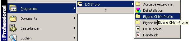 „Start“ / „Programme“ / „EXTIF pro“ / “Eigene CMYK-Profile”