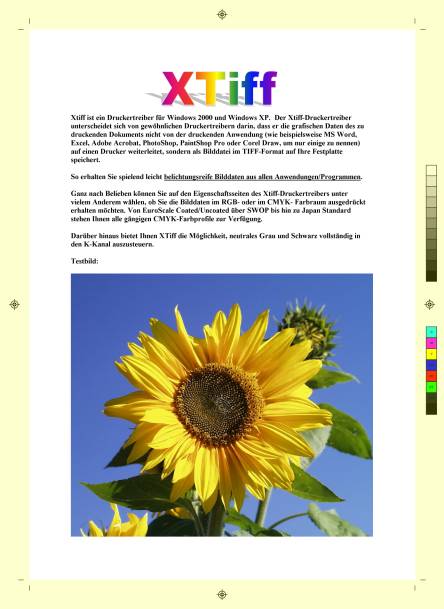 Das Suffix "Extra Plus" weist EXTIF pro an, dem Original-Bild selbsttätig Schnittränder einer Breite von je 12,5 mm samt Passkreuzen, Schnittmarken und Farbkeilen hinzuzufügen.