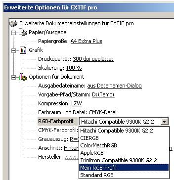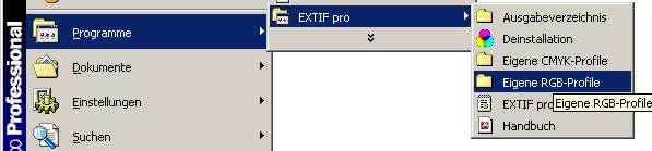 „Start“ / „Programme“ / „EXTIF pro“ / “Eigene RGB-Profile”