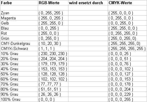 Aufdrucke (und nur für diese!) bei der Farbraumwandlung von RGB nach CMYK folgende Ersetzungsregeln für folgende