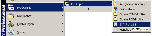 „Start“ / „Programme“ / „EXTIF pro“ / „EXTIF pro.ini“