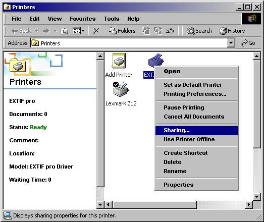 In order to open the “Printers” window, then right-click on the EXTIF