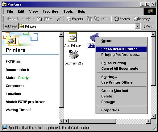 ...for opening the “Printers” window, right-click on the EXTIF pro icon