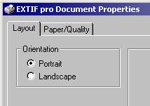 On Property Page ”Layout” you can select whether to print in Portrait or in Landscape orientation.