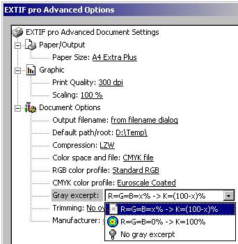 of neutral gray as they are pre-set by the CMYK color profiles, select option No gray excerpt.