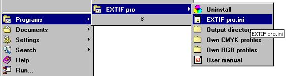 „Start“ / „Programs“ / „EXTIF pro“ / „EXTIF pro.ini“